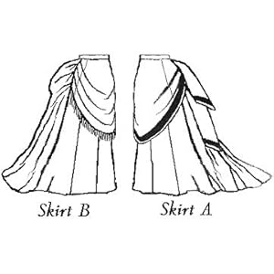 Sizes XS-2XL pattern. These skirts are drafted based on a tailoring method actually used in the 1870's. It is designed to be worn over bustle. Skirt A has the traditional five gores and two widths in back for train length. Skirt B has the five gore front and a double width back, pleated at the side back for a "pouf."